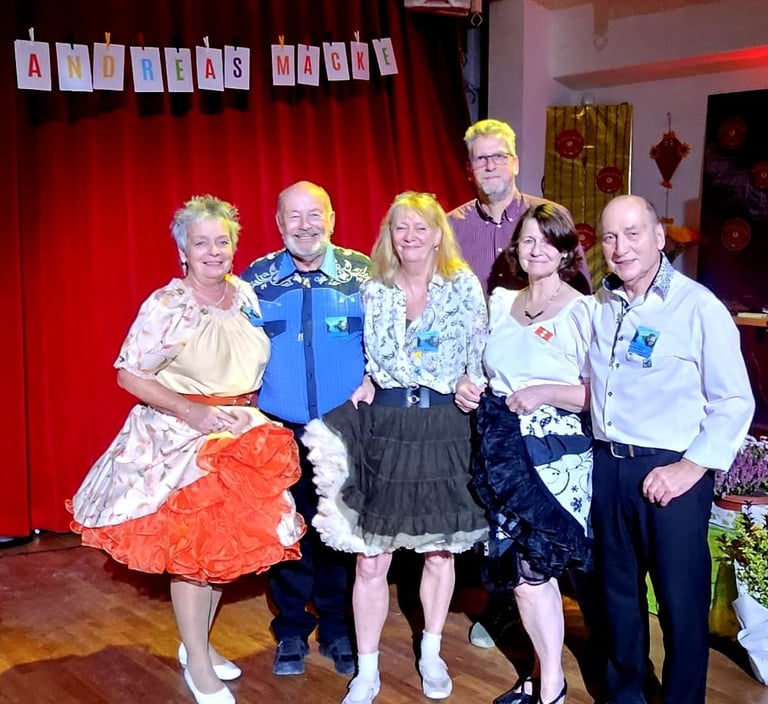 Und wieder gab es ein tolles Square Dance Event! Andreas Macke feierte mit vielen Tänzern aus verschiedenen Berliner Square Dance Clubs seinen 50. Caller Geburtstag. Eine gelungene Veranstaltung. Selbstverständlich waren auch einige Tänzer aus unserem Club dabei. Bei der Caller Ehrung kamen viele Erinnerungen zu Veranstaltungen mit Andreas Macke aus vergangenen Zeiten auf. Auf einer Leinwand wurden Bilder, Videos und Geburtstagsglückwünsche zu den Callerjahren von Andreas Macke präsentiert. Auch lustige Anekdoten waren dabei.